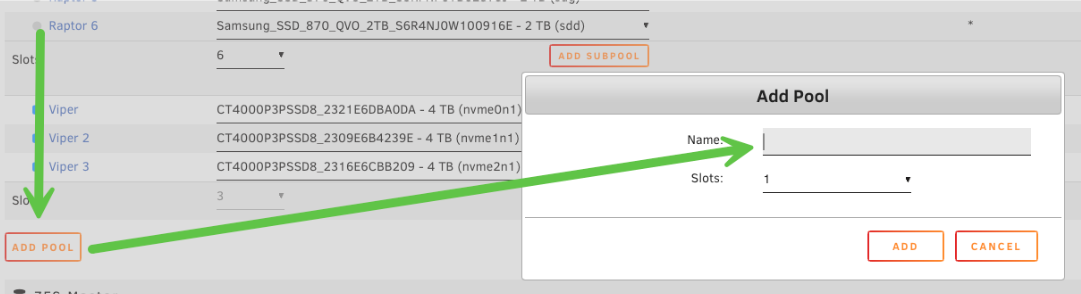 - Assignez les disques au pool (l'ordre des disques n'a pas d'importance).